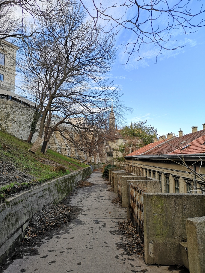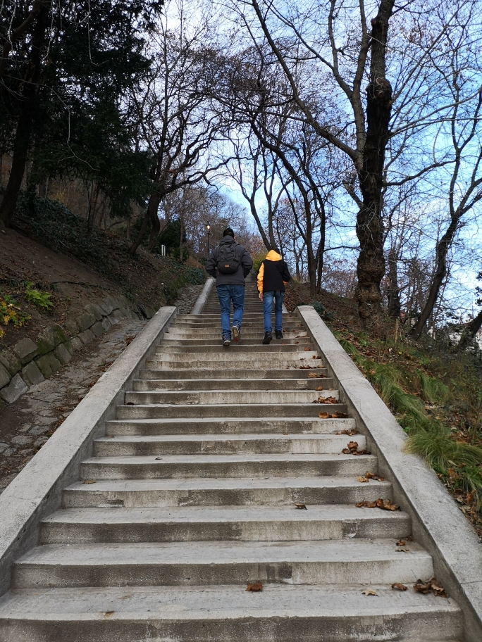 Rechtover de Gellert Spa kan je de heuvel opklimmen tot aan het vrijheidsbeeld van Boedapest. Een wandelingetje met veel trapjes van amper 700m, maar wel 235 meter omhoog!