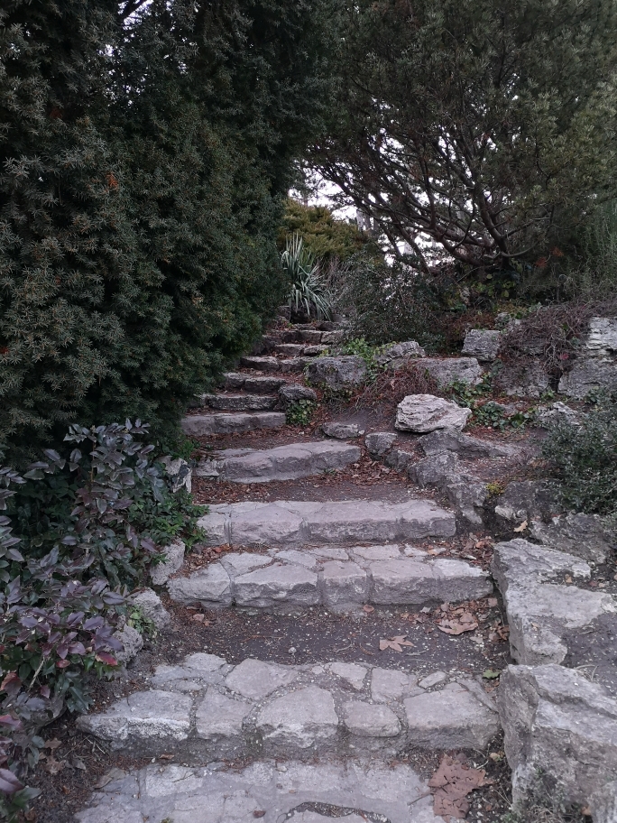 Van daar loopt een trap, helemaal naar beneden tot aan het water.
