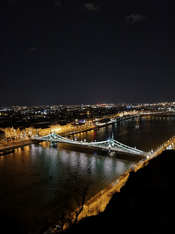 *De Vrijheidsbrug is de kortste van alle bruggen en vonden wij toch wel de mooiste van allemaal. De groene brug is ’s avonds verlicht en een populaire plek onder de bevolking om met een drankje en een hapje samen de dag af te sluiten.