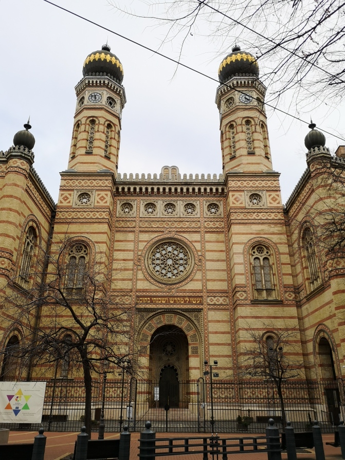 Je vindt in deze wijk ook de grote synagoge van Boedapest. Het is de grootste in Europa en de 2e grootste in de wereld. De toegangsprijs voor volwassenen is 8000 Huf of ongeveer 20€ per persoon, wat wij nogal veel vonden, dus wij gingen eens rond het gebouw en bekeken het van buiten. 😉